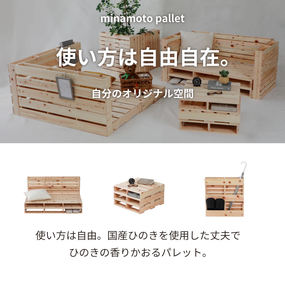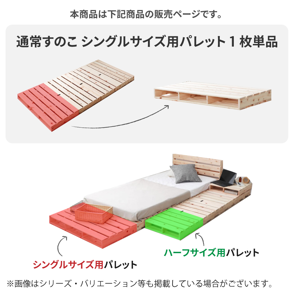 画像はシリーズ・バリエーション等も掲載している場合がございます。本商品は 檜パレットベッドパーツ 通常すのこ シングルサイズ用パレット1枚単品 の販売ページです。