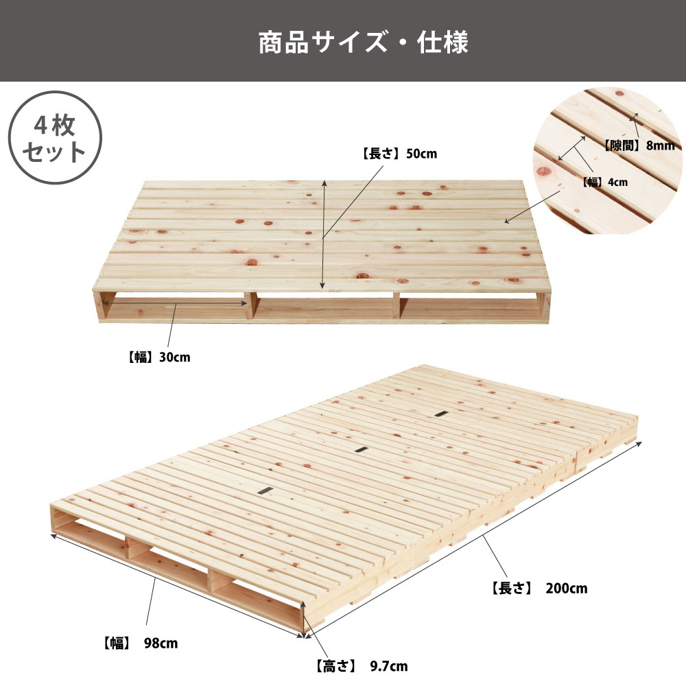 画像はバリエーション等も掲載している場合がございます。本商品は 檜パレットベッド 繊細すのこ シングルサイズ パレット4枚セット の販売ページです。