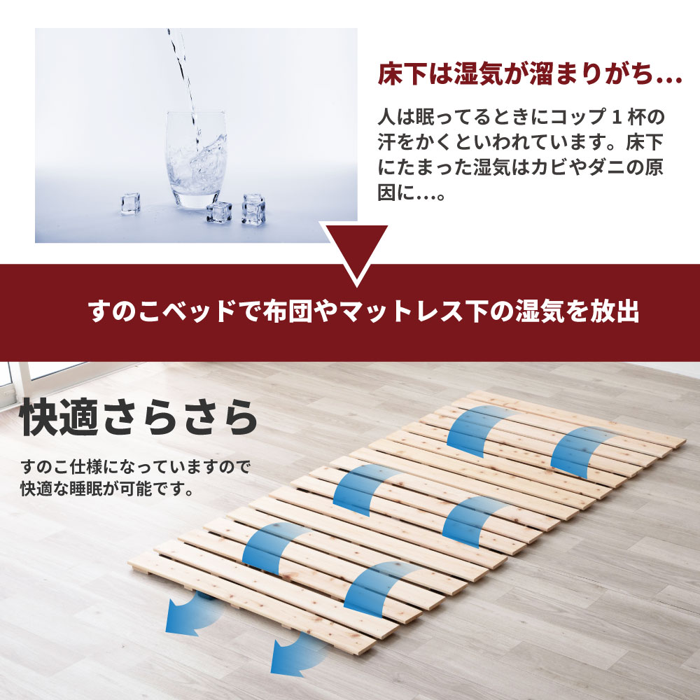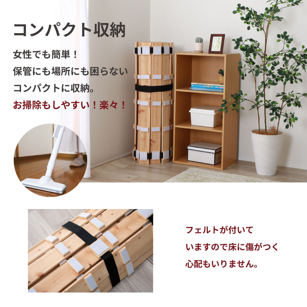 | ロールすのこベッド フレーム単品 シングル 日本製 国産ひのき 低ホルムアルデヒド 布団干せる 天然木ひのき 檜ベッド ひのきベッド |