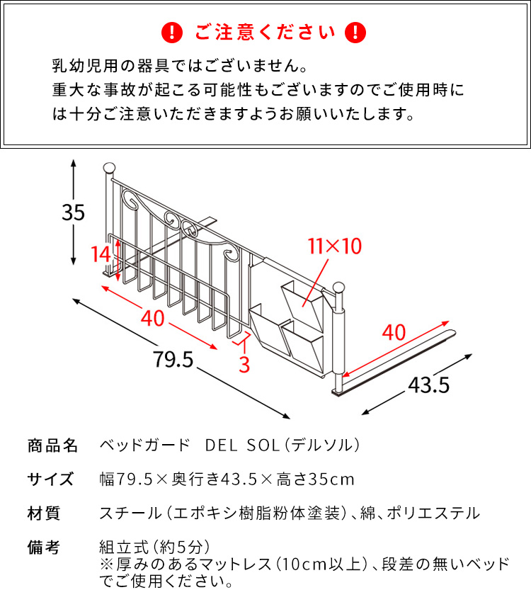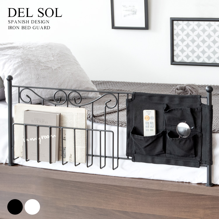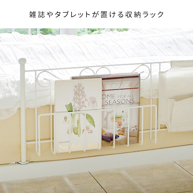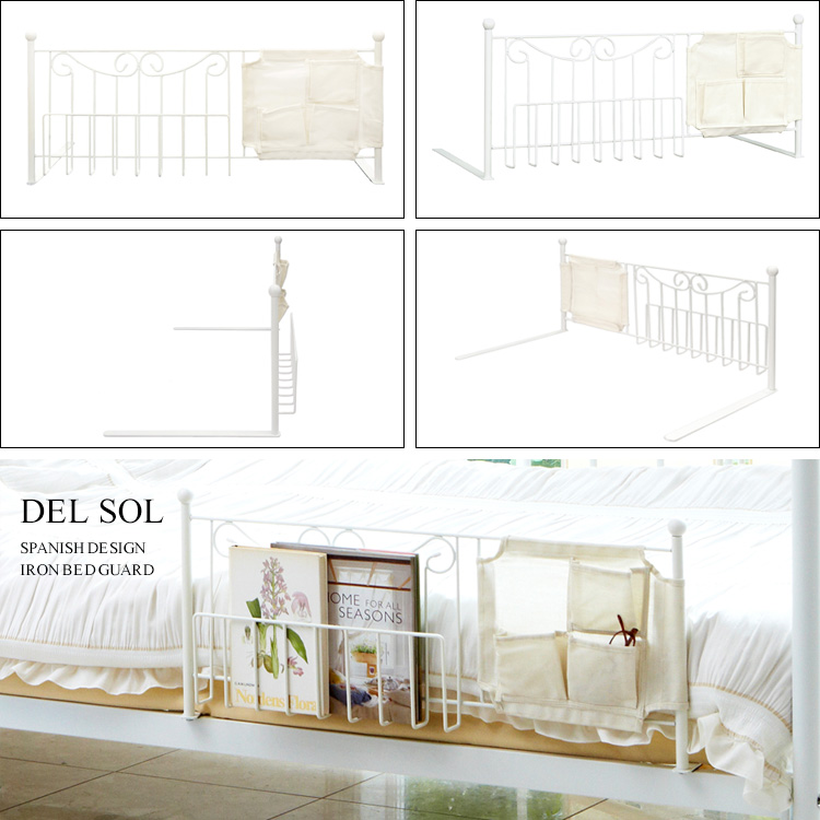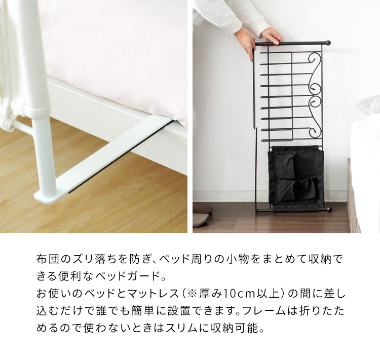 | ベッドサイドガード ベッドガード ベッド用柵 ベッド柵 ベッドフェンス 可愛い おしゃれ 姫系 幅80 奥行き44 高さ35 エレガント アイアン 手すり ホワイト 白 収納付き |