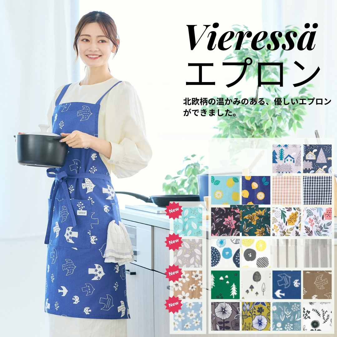 北欧柄で温かみのある、優しいエプロンができました。インド綿のナチュラルな生地感と、使うことにより変化する色合いで自分だけの特別なエプロンになります。