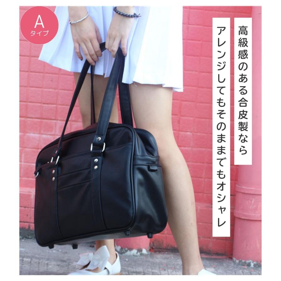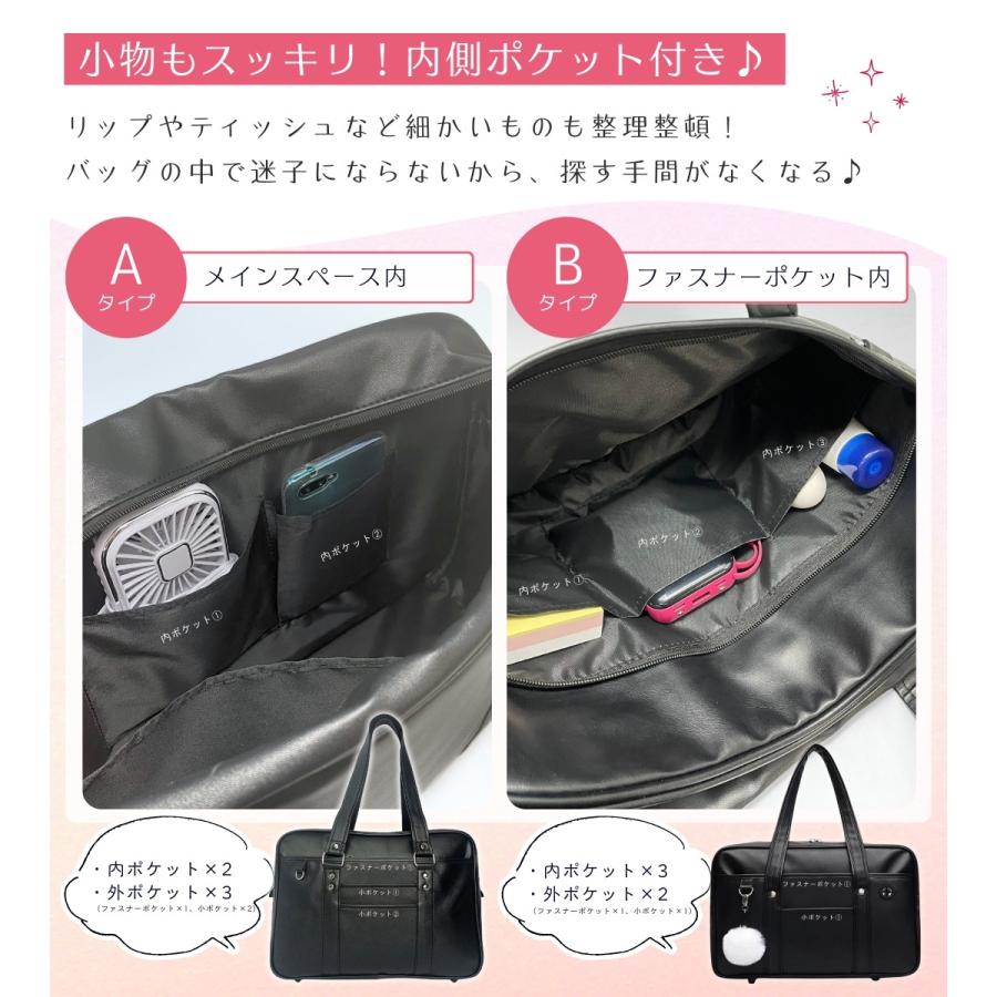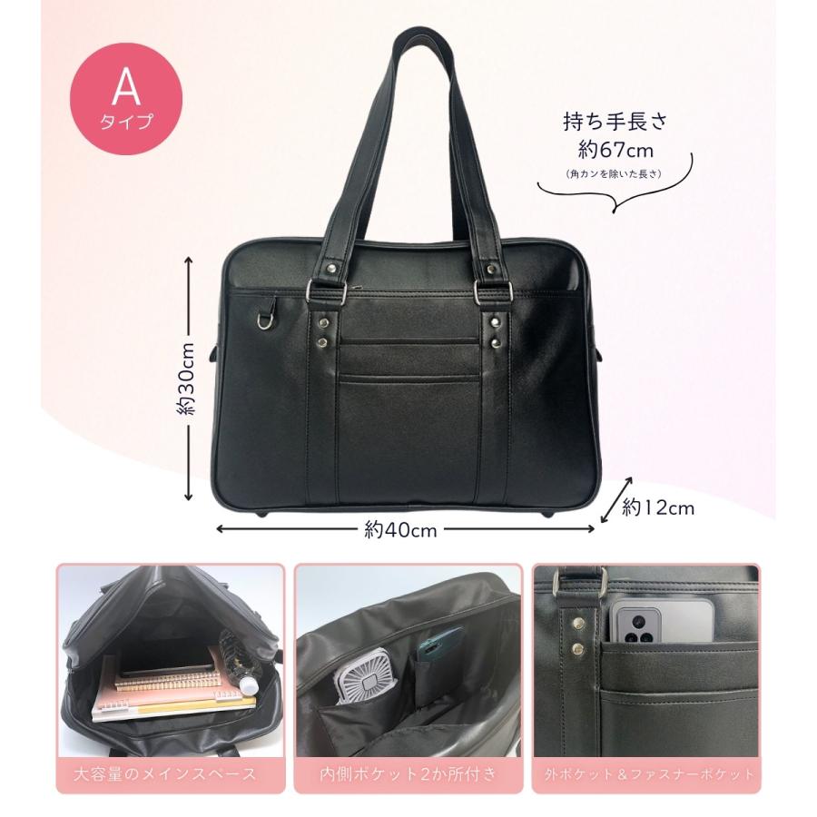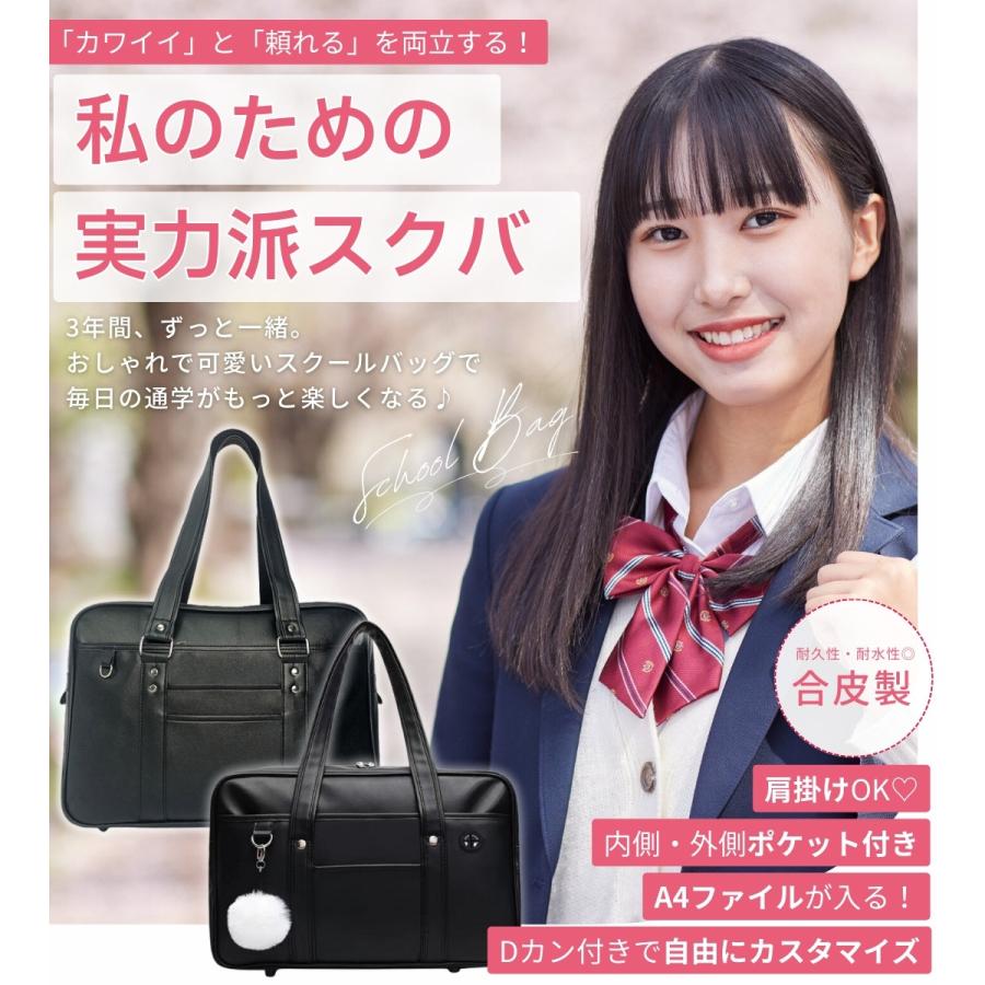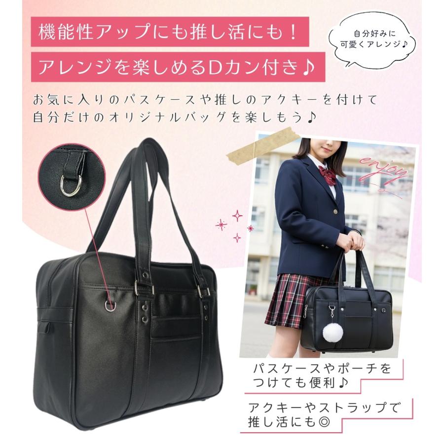 スクールバッグ 合皮 黒 大きめ 40cm ブラック スクバ 高校生 女子高生 通学 バッグ かわいい 大容量 Dカン ポケット 底鋲 入学 男女兼用 しっかり シンプル