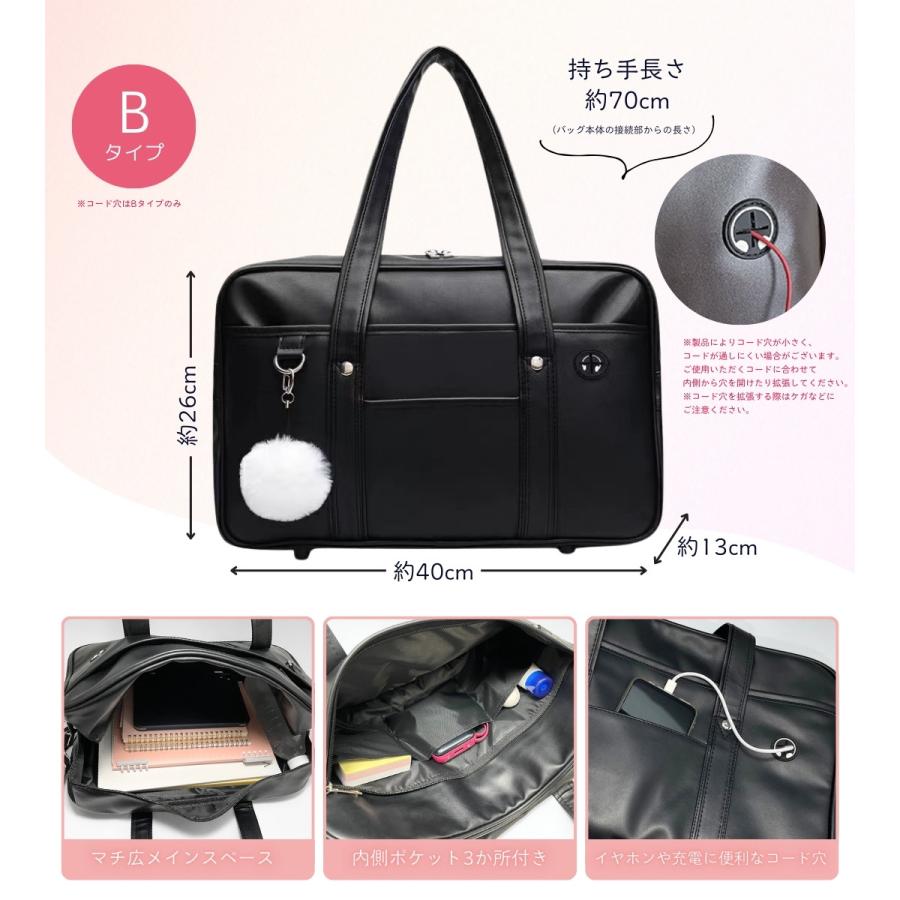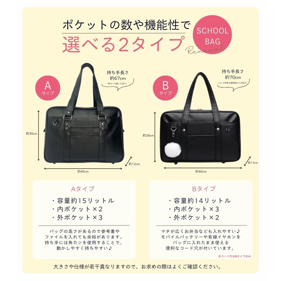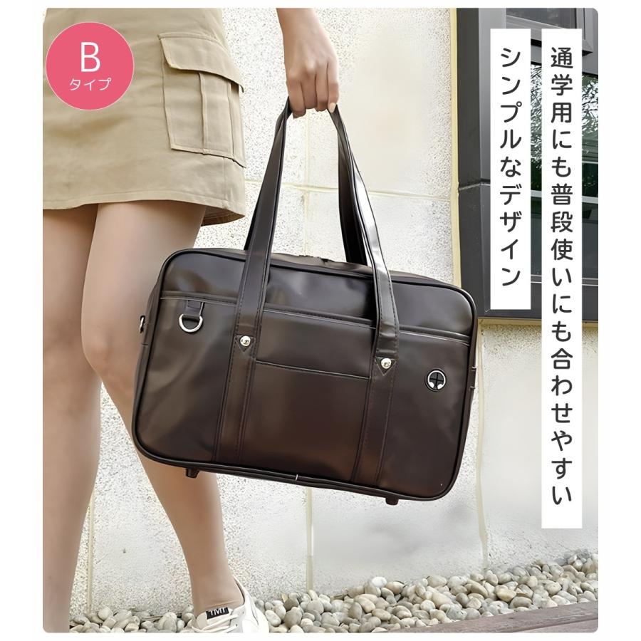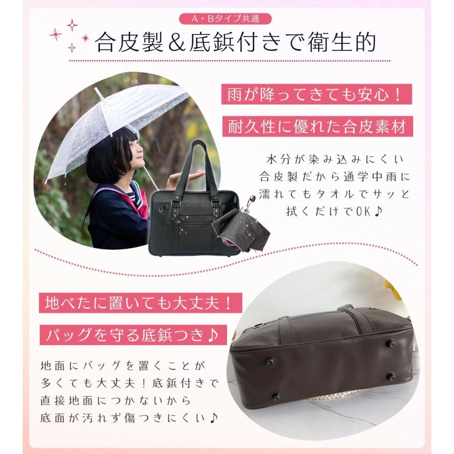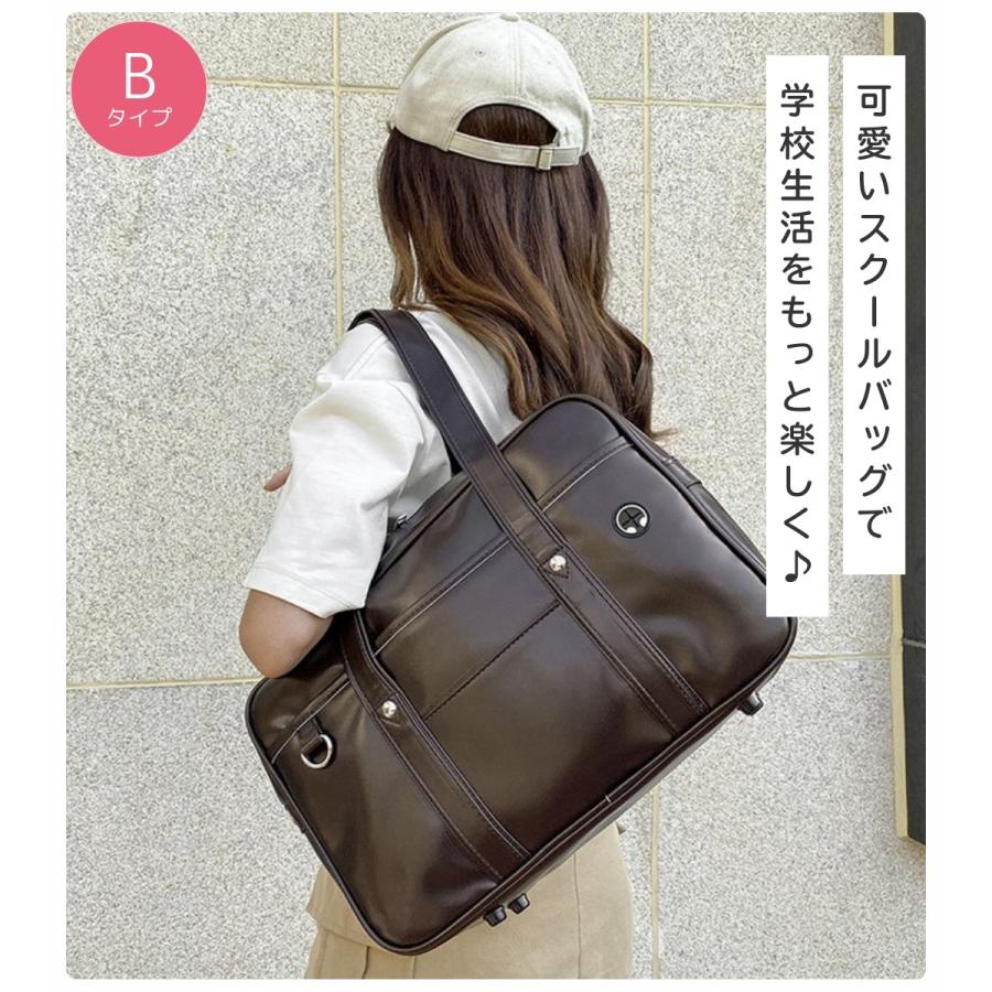 スクールバッグ 合皮 黒 大きめ 40cm ブラック スクバ 高校生 女子高生 通学 バッグ かわいい 大容量 Dカン ポケット 底鋲 入学 男女兼用 しっかり シンプル
