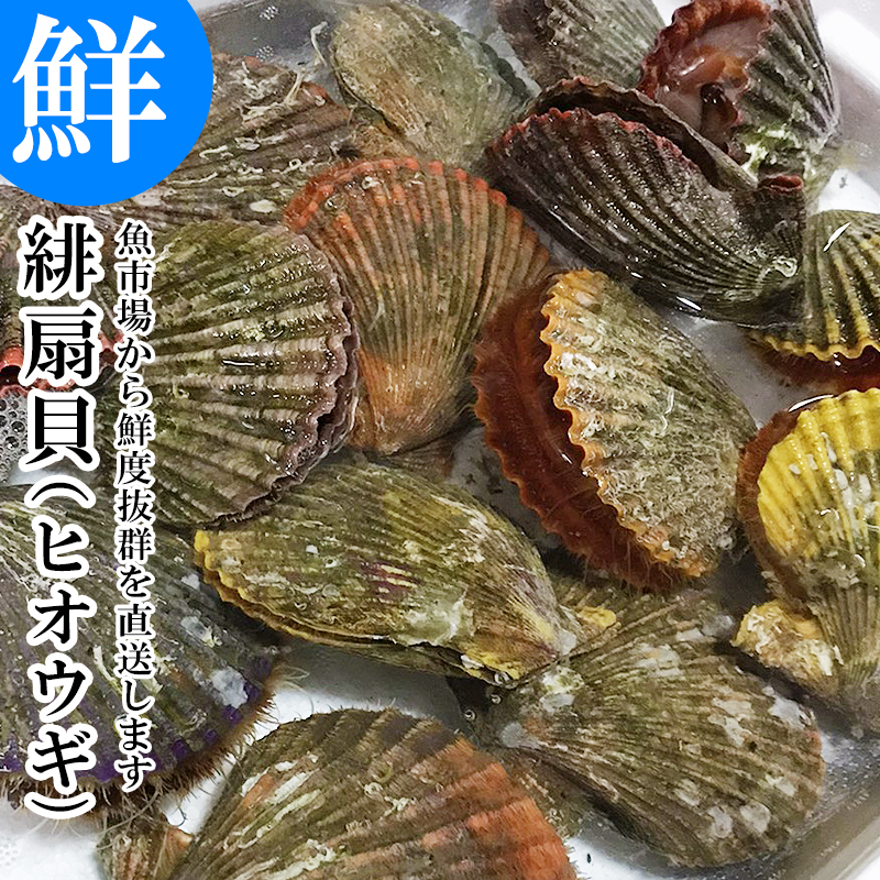 緋扇貝と書く事でもわかるように、ホタテ同様「扇」のような形ですが、個体差で殻に色が着いています。
