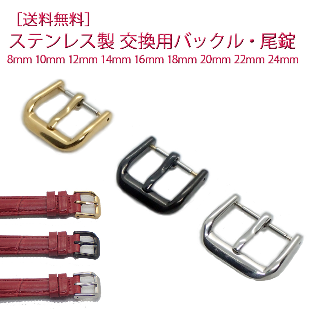 ステンレス製 腕時計ベルト 交換用 ピンバックル・尾錠 8mm 10mm 12mm 14mm 16mm 18mm 20mm 22mm 24mm 調整