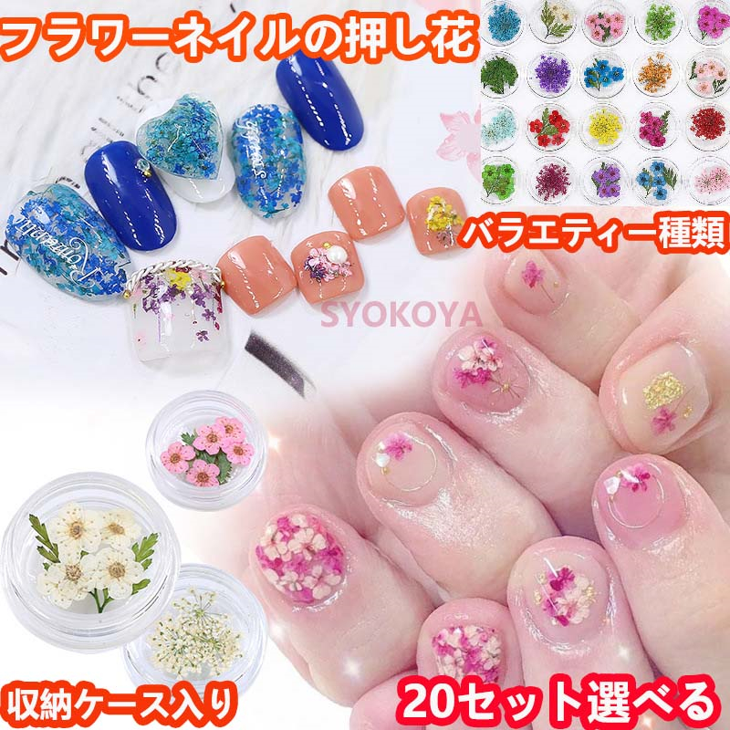 【48h限定330→30円】20セット選べる 押し花セット フラワーネイル 収納ケース入 バラエティー種類 クリスマス ハンドメイド ドライフラワーDIY レジンパーツ