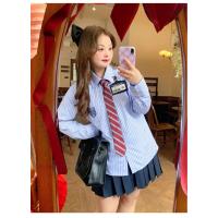 なんちゃって制服 シャツセット スカート 大きいサイズ 上下セット スクールスカート プリーツスカート ミニ丈 42cm 48cm ストップ柄 大きいサイズ 卒業式 入学式 ぽっちゃり 学生服 レディース 春 高校生 学生服 通学 女の子 女子高校 JK服 jk 可愛い ブルー tp1145