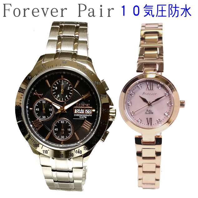 ペアウォッチ クロノグラフ 高速1/20秒計測 10気圧防水 デイデイト 日付 曜日 【レディース腕時計 ソーラー腕時計】 フォーエバー FG-2020-FL-1201P