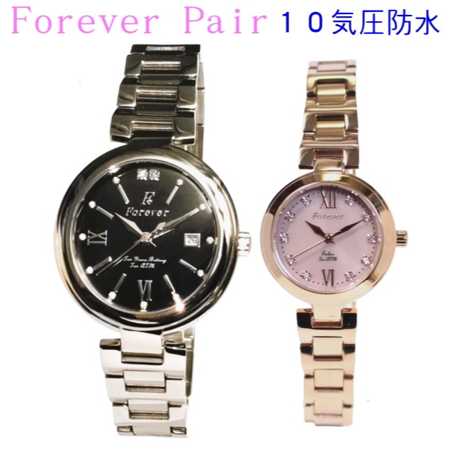 ペアウォッチ カップル Forever 10気圧防水 レディース腕時計は ソーラームーブメント メンズ腕時計は10年電池ムーブメント フォーエバーFGL1201 高級感