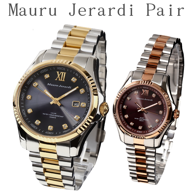 ペアウォッチ 電池交換不要 夫婦 マウロジェラルディ ソーラー 10気圧防水 5気圧防水 カップル メンズ レディース クリスタル クリスマス プレゼント