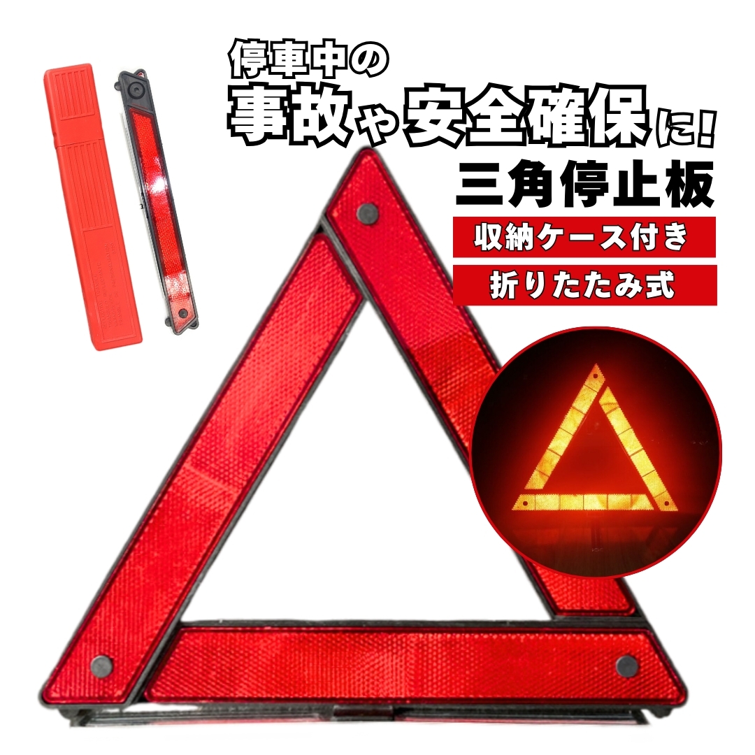 爆買 三角表示板 三角停止板 反射板 三角版 車 バイク 自動車 非常停止板 追突防止 折りたたみ ケース付 夜間 日中 緊急停車