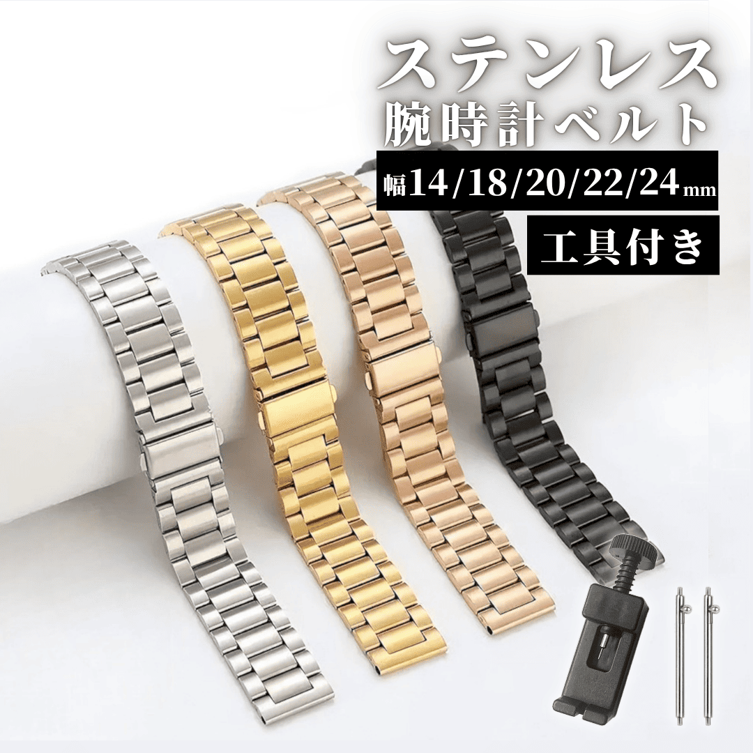 腕時計 ベルト ステンレス 金属 メタル 時計ベルト 時計バンド 14mm 18mm 20mm 22mm 24mm 時計ベルト交換 替えベルト メンズ レディース シンプル