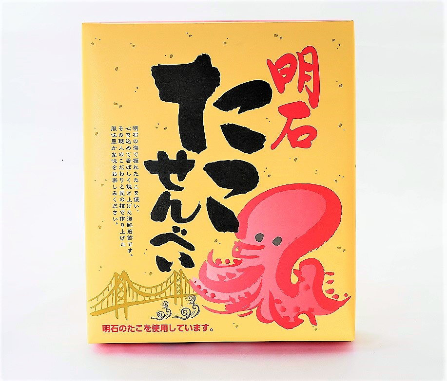 | 内容量 | 明石たこせんべい24枚入 | 原材料 | 澱粉(国内製造)、植物油、たこ(明石産)、えび、生姜酢漬、食塩、砂糖、ねび、削り節、蛋白か水分解物、粉末醤油、あおさ、デキストリン、酵母エキス/加工澱粉、調味料(アミノ酸等)、着色料(紅麹)、酸化防止剤(V・E)、甘味料(ステビア)、膨張剤、(一部にえび・小麦・さば・大豆を含む) 本品を製造している工場では、えび、いか、カニ等の魚介類以外に、小麦。卵・乳成分、落花生を含んだ製品も生産しています。 |