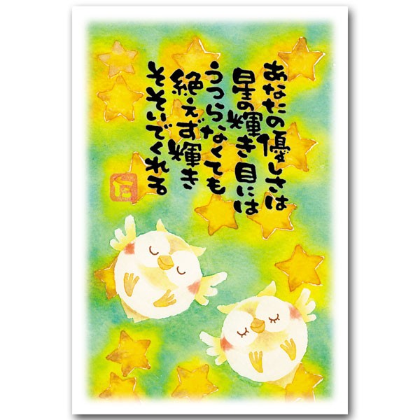 癒やされるメッセージ入りポストカード 星ふくろう マエダタカユキ