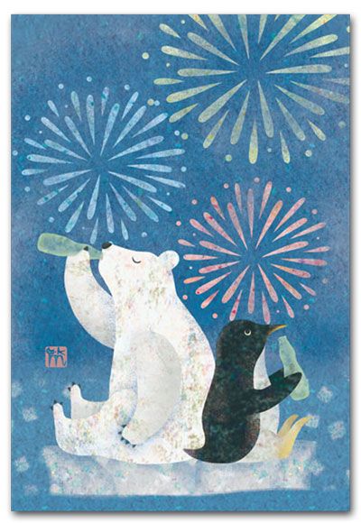 くろたきますみのポストカードは、下絵をパソコンでデーター化し、貼り絵のように描いています。まるで和紙のような優しいほのぼのとしたイラストです。