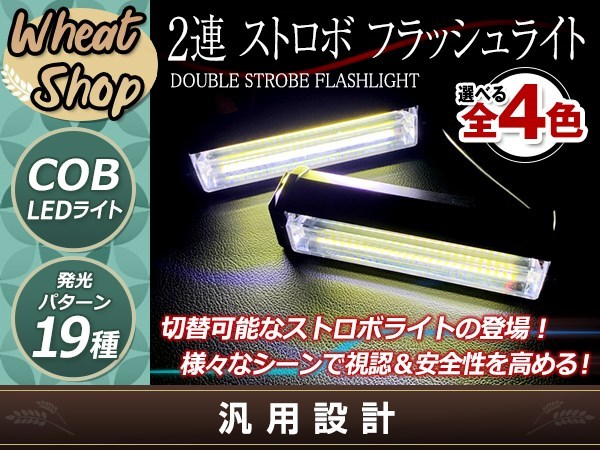 DC12V COB 6LED×2連 ストロボ フラッシュライト キット 発光パターン 変更可能 リモコン付 作業灯 警告灯 ワーニングライト ホワイト