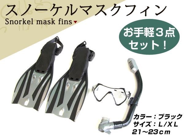 新品 シュノーケル ダイビングマスク 3点セット L/XL 21〜23cm 子供用 キッズ 女性用 素潜り フィン