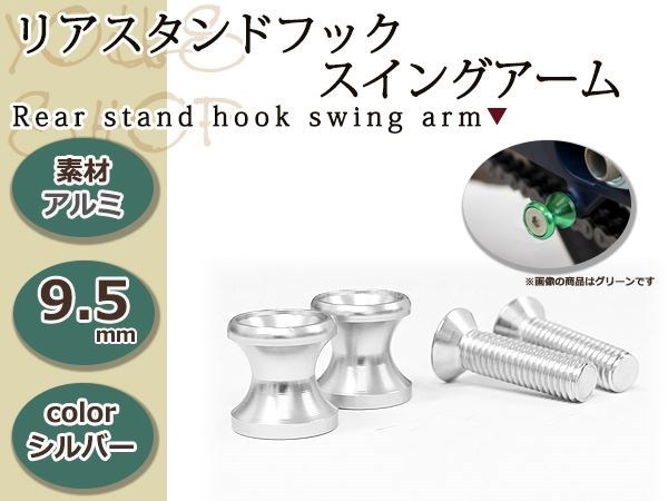 メール便送料無料 アルミ リア スタンドフック スイングアーム用スタンドフック M10 シルバー 10mm 2個セット アルマイト処理 ボルトタイプ