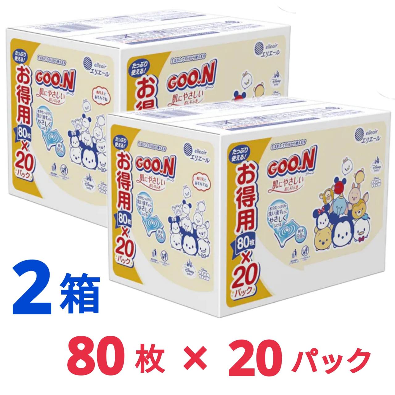 大王製紙 エリエール グーン 肌にやさしいおしりふき 80枚×20パック 2箱