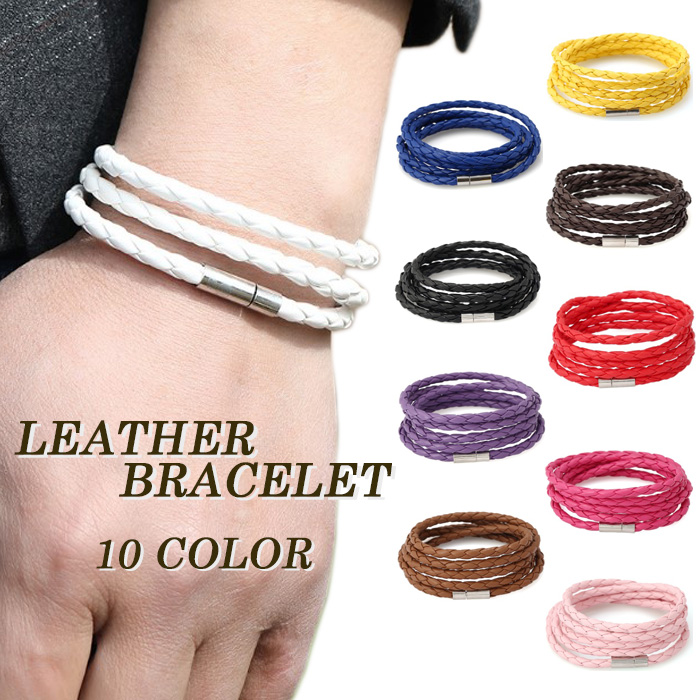ブレスレット メンズ レディース アクセサリー フェイクレザー 編み込み シンプル カジュアル 小物 おしゃれ フリーサイズ