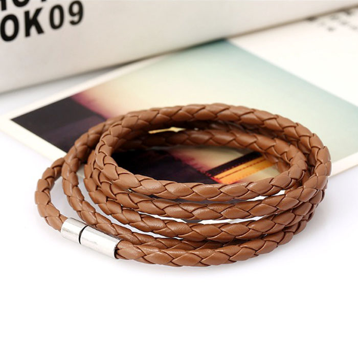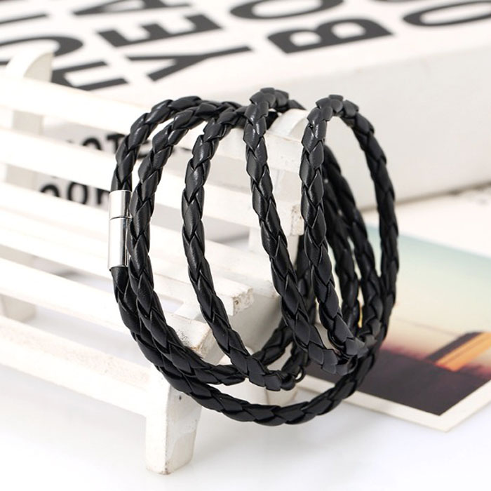 シンプルなデザインでオシャレな編み込みのPUレザーブレスレットです。