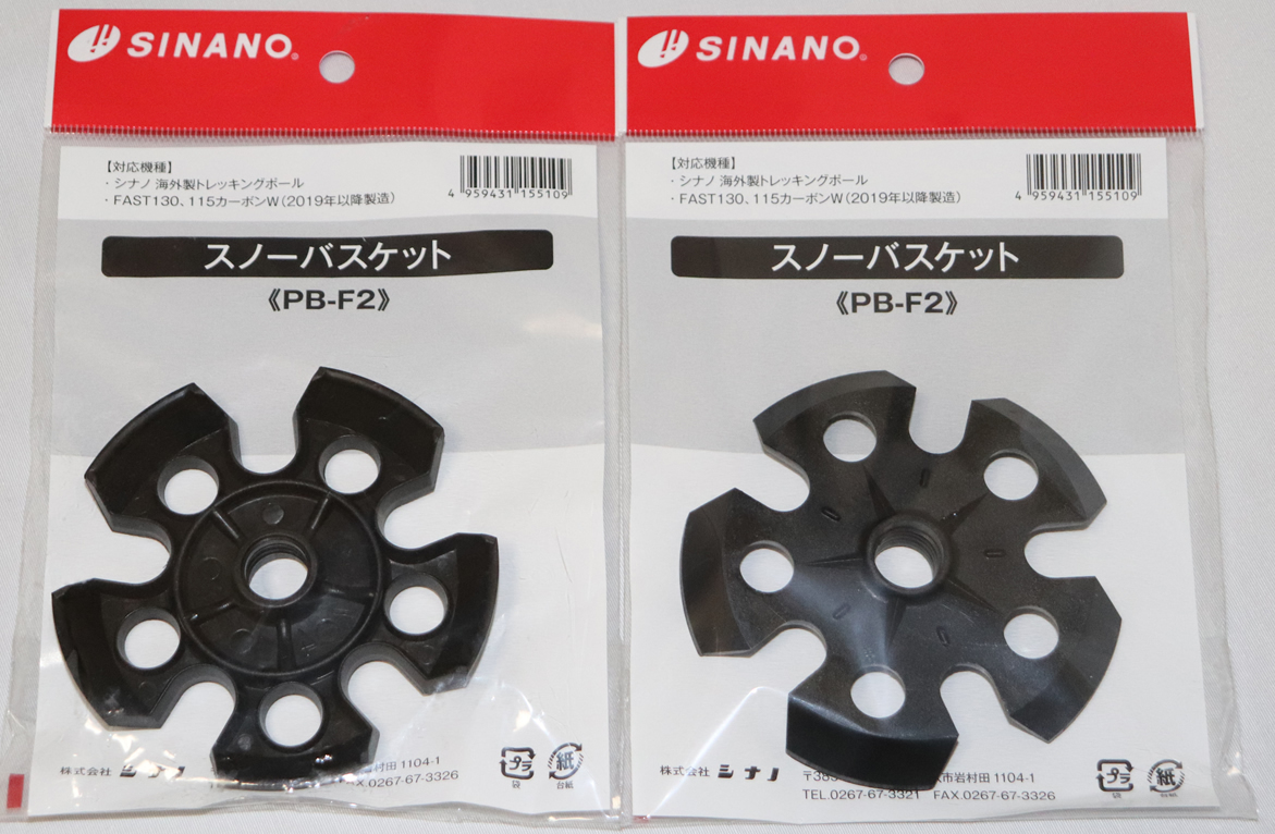 シナノSINANOのトレッキングポール「フォールダー TWIST」用のスノーバスケットPB-F2 2個1組です。内径13.7mm、バスケットの外径90mm。ねじ込み式です。 〇 画像のポールは付いておりません。バスケットのみの価格です。 〇 シナノの「Fast130、115 カーボンW(2019年以降製造)」「Terrain A/S」「ロングトレイル」「LT18」にも装着が可能です。 〇 シナノのスノーバスケットPB-58とは異なります。お間違えないようお願いします。 ※ また、本商品単品ではギフト包装、メッセージカードサービスの対象外です。