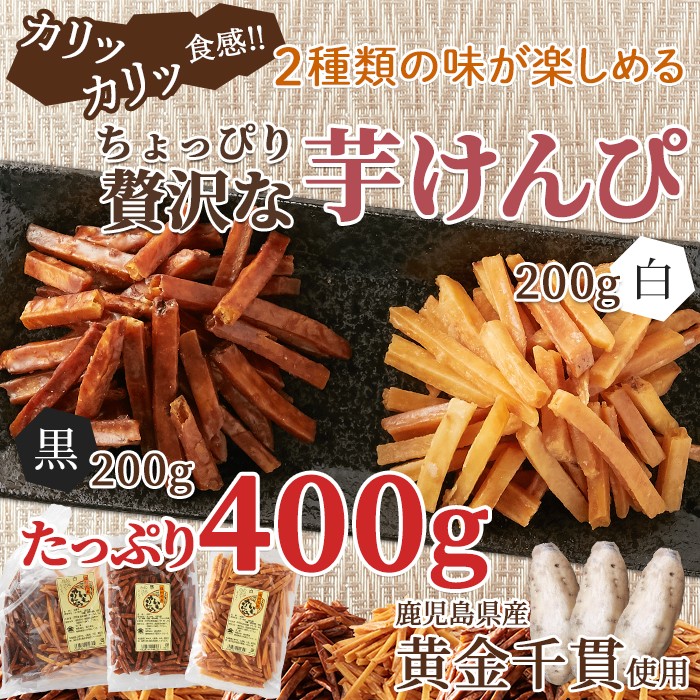二種の味を贅沢に食べ比べ!!鹿児島県産のさつまいも100%使用★カリッカリッ食感の芋けんぴ400g(200g×2)