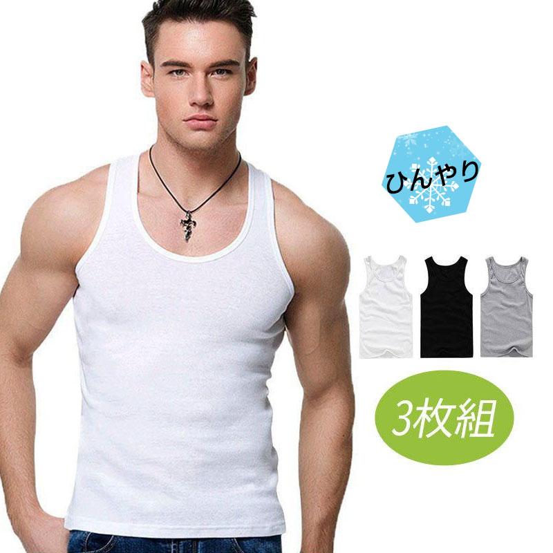 【キーワード】タンクトップ 3枚組 メンズ 無地 ベスト ノースリーブ インナー 肌着 下着 ランニング 熱中症対策 ひんやり サマーウエア スポーツ トップス