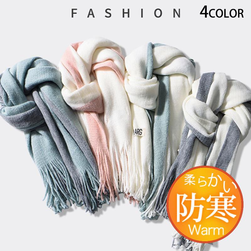 マフラー メンズ ロング 大判 スカーフ バイカラー フリンジ 保温 男女兼用 カジュアル ペア 秋冬 厚手 通勤通学 カップル ファション