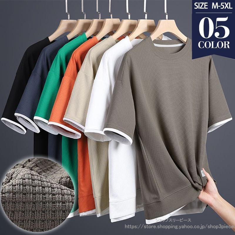 Tシャツ メンズ 半袖 フェイクレイヤード クルーネック 五分袖 無地 プルオーバー カジュアル 細身 シンプル 夏物 おしゃれ