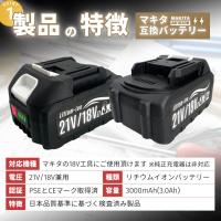 マキタ 互換 バッテリー 18V 21V 兼用 3000mAh 2個 PSE認証済み 充電式 LED電池残量表示 DIY 園芸 小型 軽量 ※充電器別売り (AB1830B/2個)