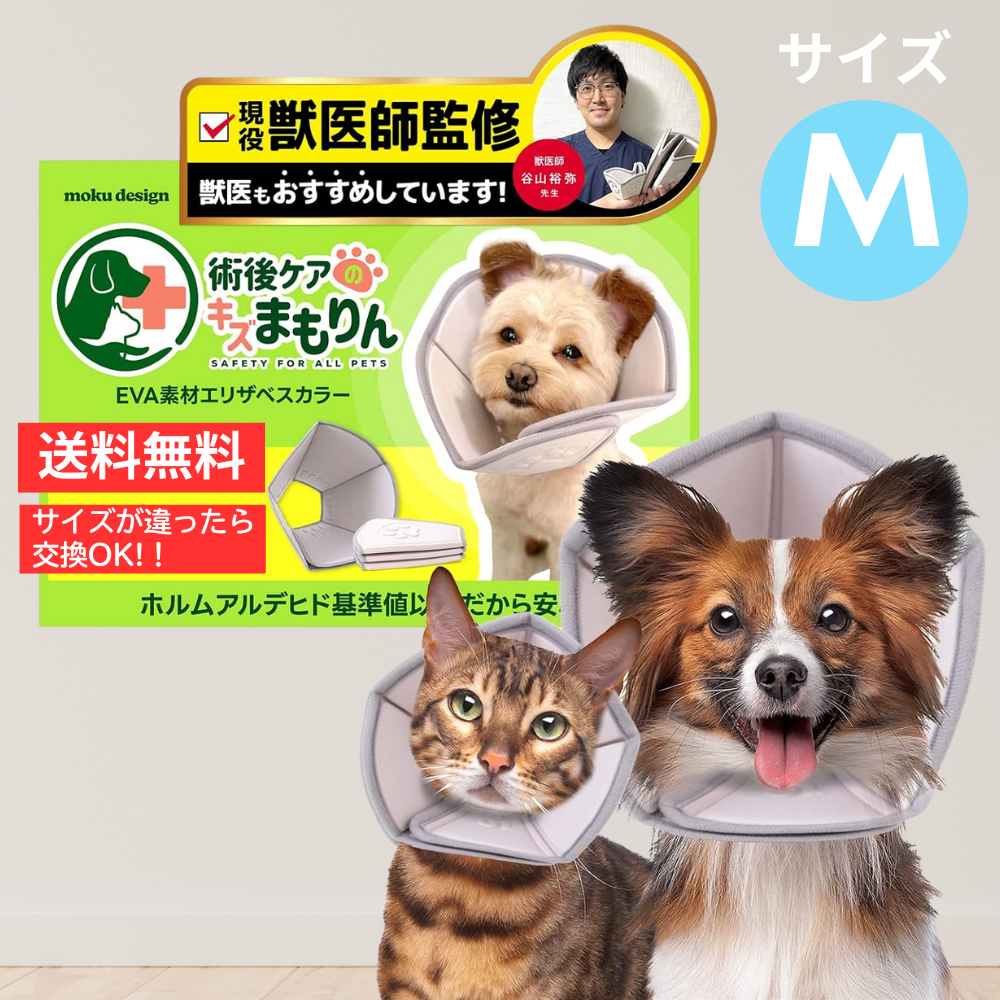 エリザベスカラー 猫 犬 サイズ調節可能 EVA素材【第三者機関での検査済みで舐めても安心】 Mサイズ 傷舐め防止 術後のケア 軽量 柔らかい
