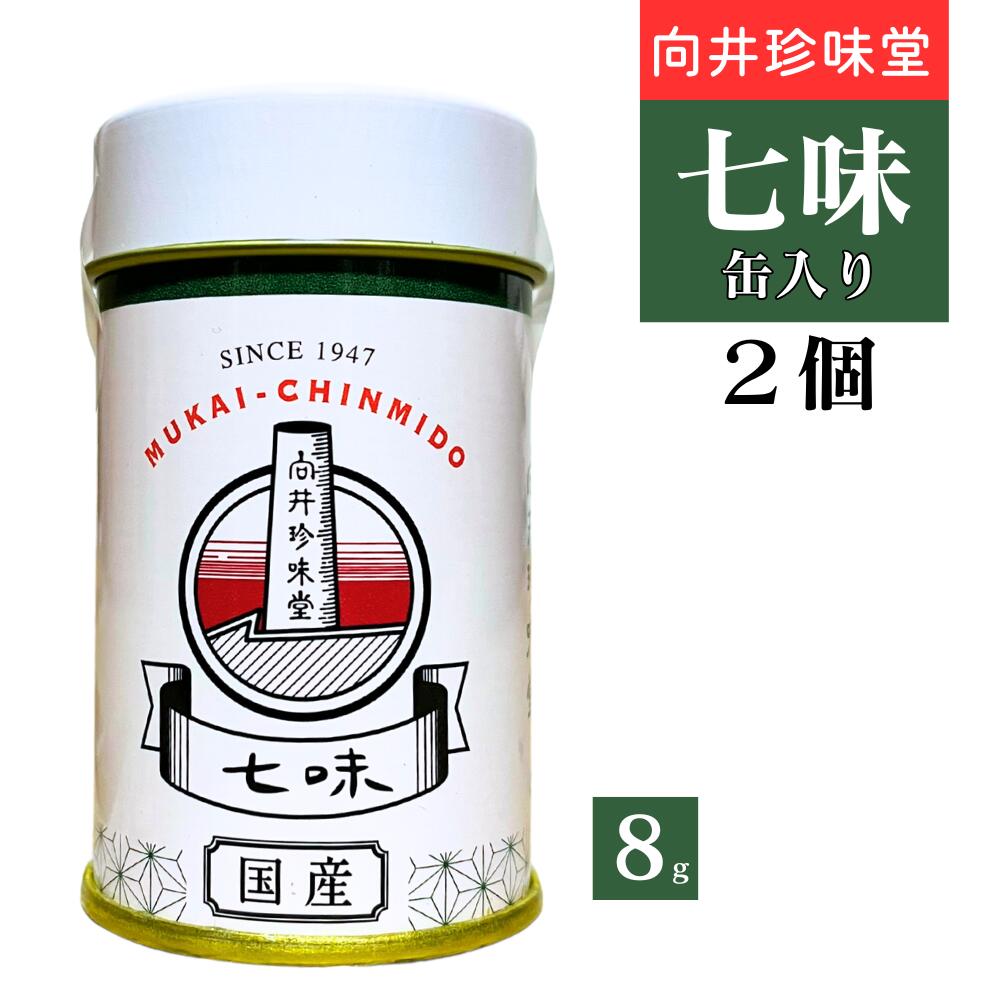 向井珍味堂 100%国産 七味 8g 缶入り 粉末 七味唐辛子 最高 品質 スパイス 粉末 調味料 辛味成分 2個セット
