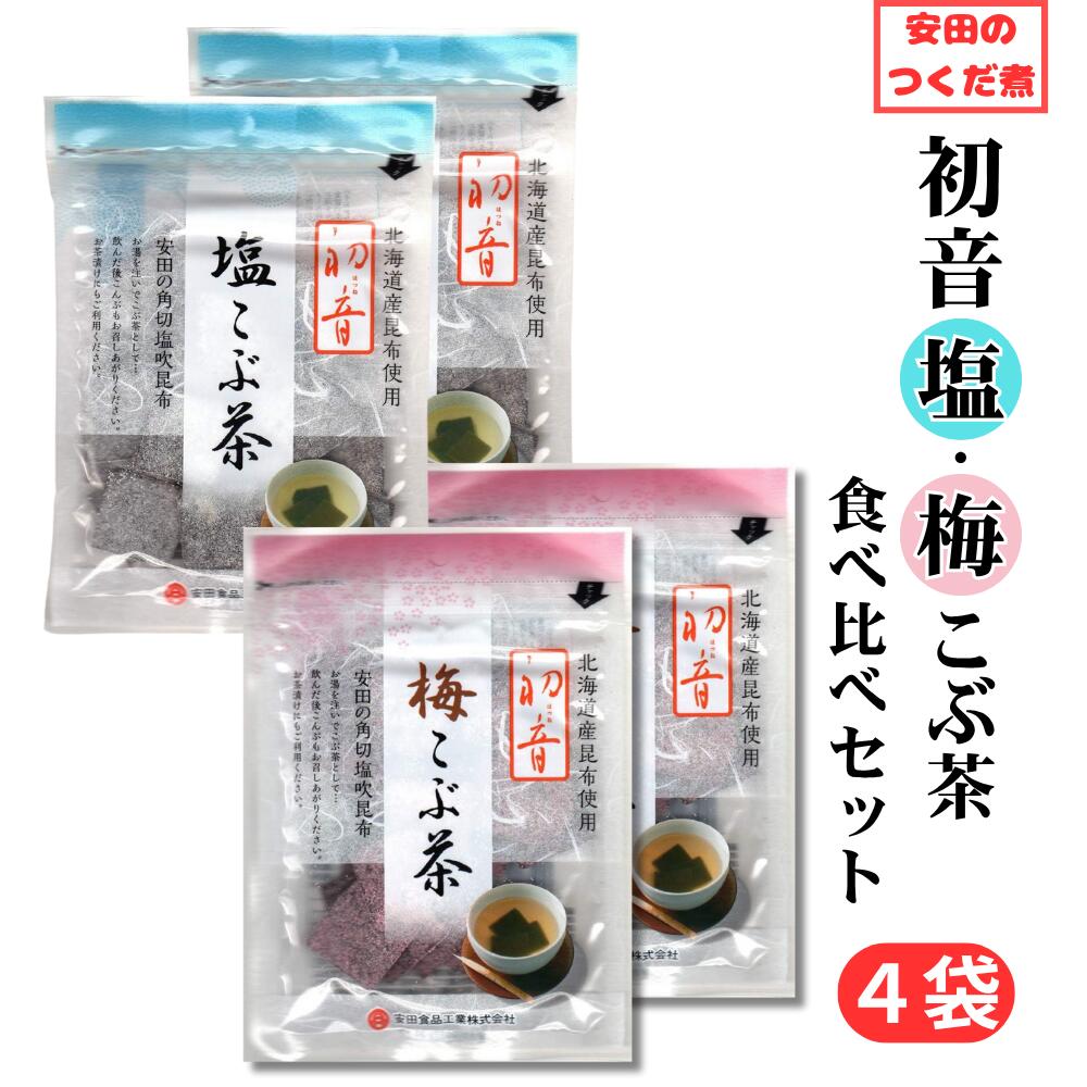 安田食品工業 こぶ茶 初音 角切昆布 北海道産昆布使用 昆布茶 こぶ茶 お茶づけ だし 食べ比べ 2種 各2袋 塩こぶ茶 初音40g・梅こぶ茶 初音35g