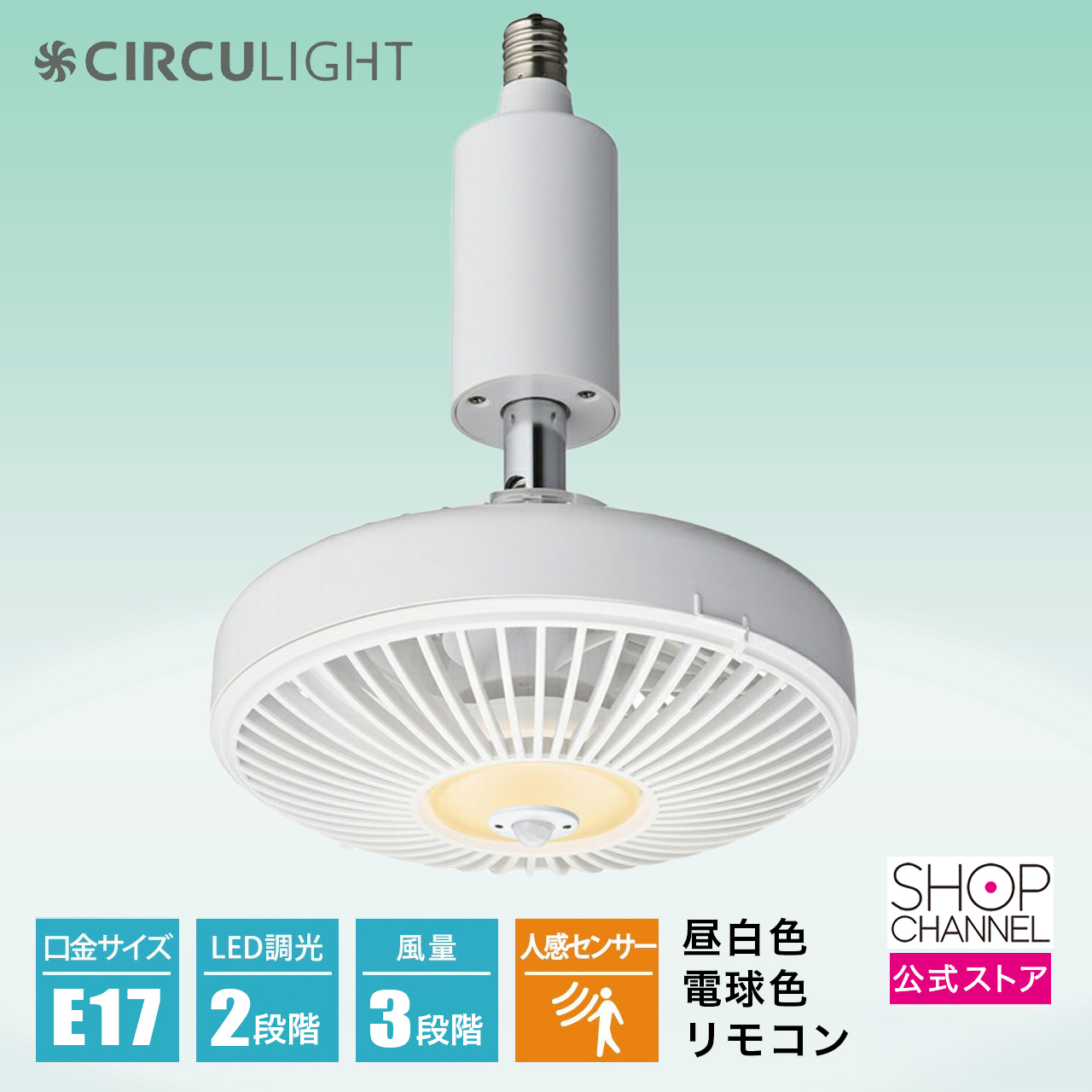 名称:ドウシシャ サーキュライト シーリングファンライト ソケットモデル 人感センサー 口金サイズE17 昼白色 電球色 ホワイト