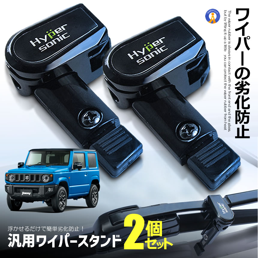 ワイパーのアームの部分に取り付けます。 固定は付属ネジです。 右ハンドル用、左ハンドル用をお選びください。(適合については写真、サイズ等でご判断ください。) 商品サイズ:約5×1×1.6cm 材質:ABS 右、左ハンドル用ワイパースタンドです。 ワイパーのゴムは常にフロンとガラスに接している状態ですが、 すこし浮かせてやることで夏場なら熱、冬場なら凍結から ワイパーのゴムを守り寿命を少しでも長くします。 長く愛車に乗らない時などは特に便利です。 スタンドしていただくときは手動ですがワイパー利用時に 自動的に倒れてワイパー利用可能となりますので便利です。 ※仕様やデザイン等は予告なく変更される場合がございます。 送料無料【クレジット決済のみ】 代引き決済の場合は送料755円発送前に加算させて頂きます ※北海道は+215円UP、離島地域及び沖縄県は+2000円UPにて承ります。
