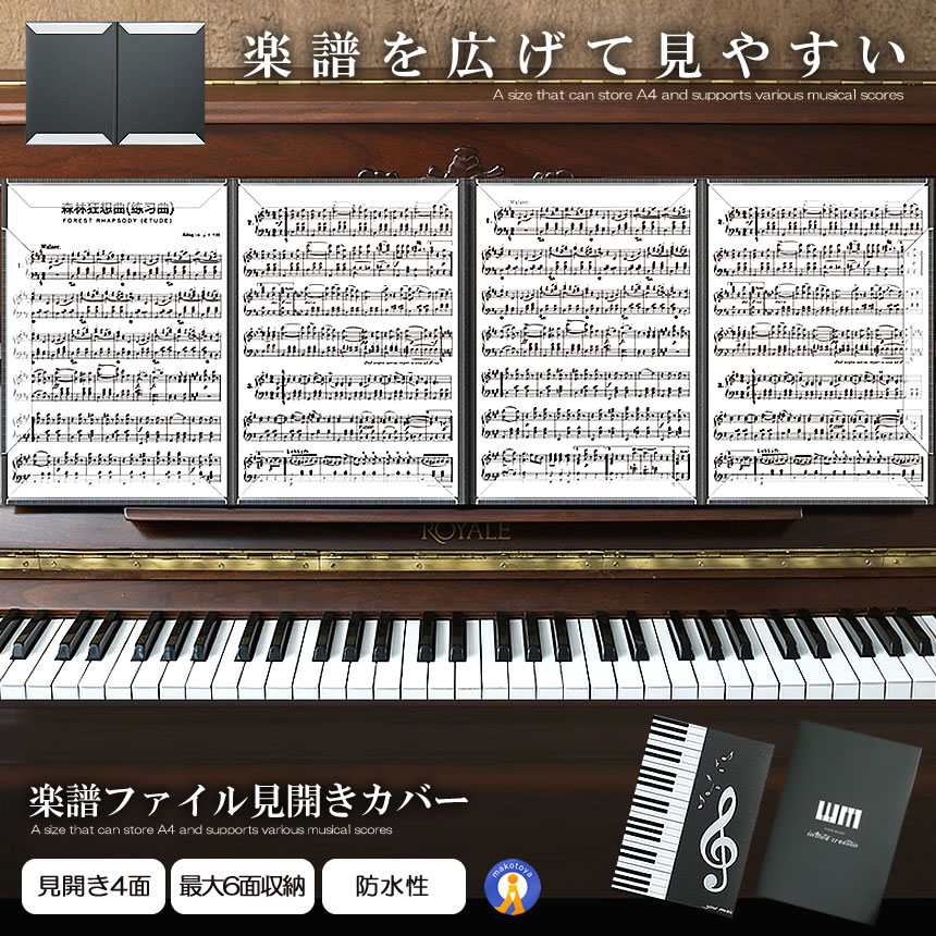楽譜ファイル 見開き カバー 書き込み A4 バンドファイル 譜面ファイル ブラック ピアノ 音楽 防水性 見えやすい 快適 日用品 生活雑貨 丈夫 警音 MIHIFUMEN