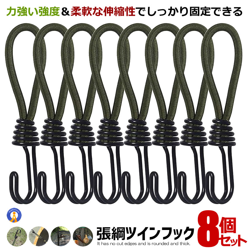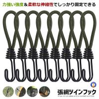 張綱ツインフック 8本セット ロープ張り フック ゴム ゴムフック テント 張綱ストレッチコード ロープフック テントフック 錆防止加工 8ROPUHOLD