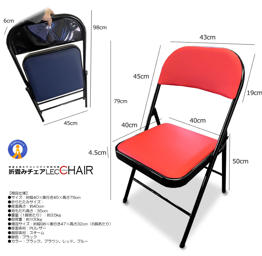 折りたたみ チェア 椅子 レクチェア 完成品 組立不要 クッション レザー 折畳み ミーティングチェア PUCHAIR
