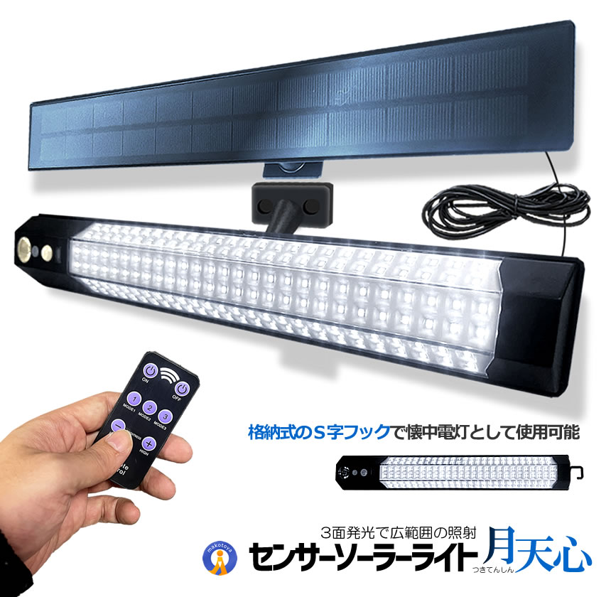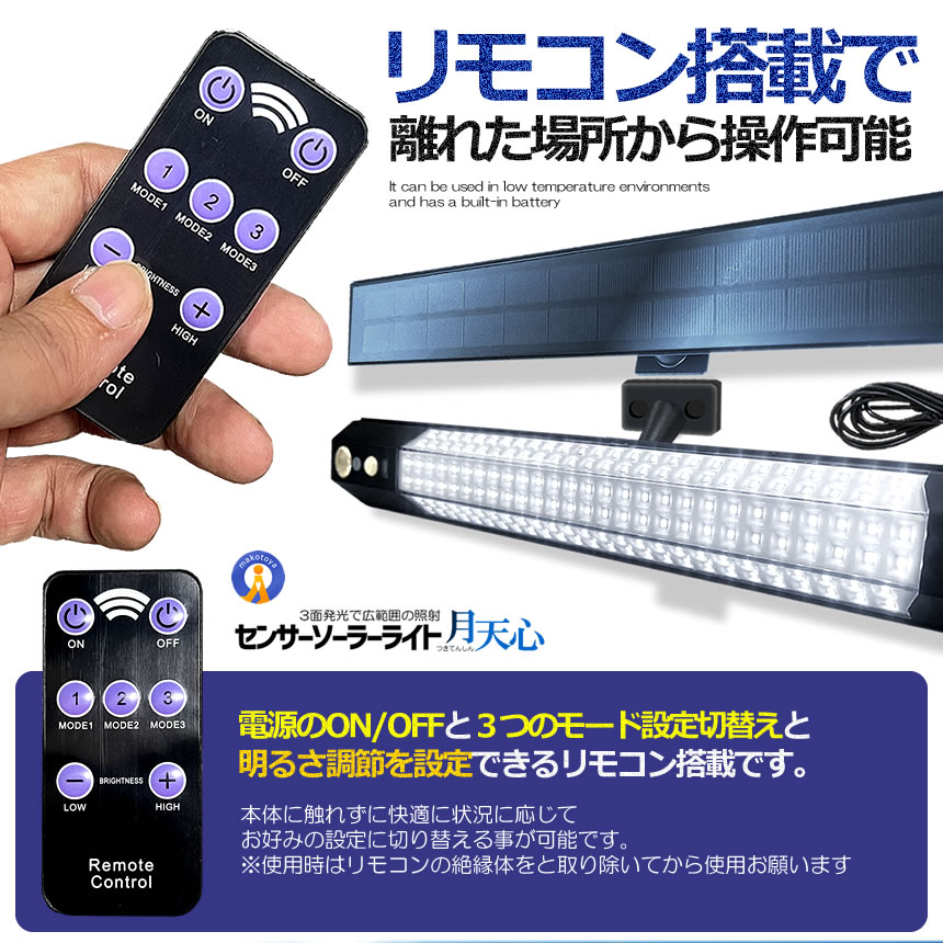 センサー ソーラーライト 分離型 リモコン付き 1灯 158LED 人感センサー 3つ知能モード 省エネ 防水 防犯ライト TUKITENSIN