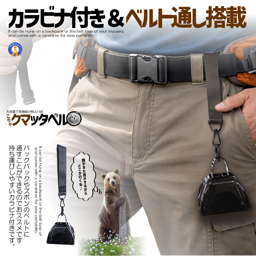 ■ベルト通し&カラビナ付きの熊よけ鈴!