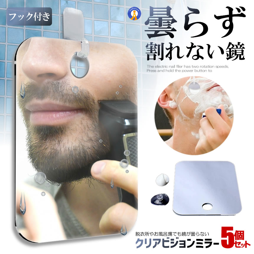 5個セット 曇らず割れない お風呂ミラー バス 曇り止め 洗面所 吸盤 フック付き くもり止め 鏡 壁掛け 防錆性 吊り下げ 軽量 浴室 脱衣所 洗面所 POSITIMI