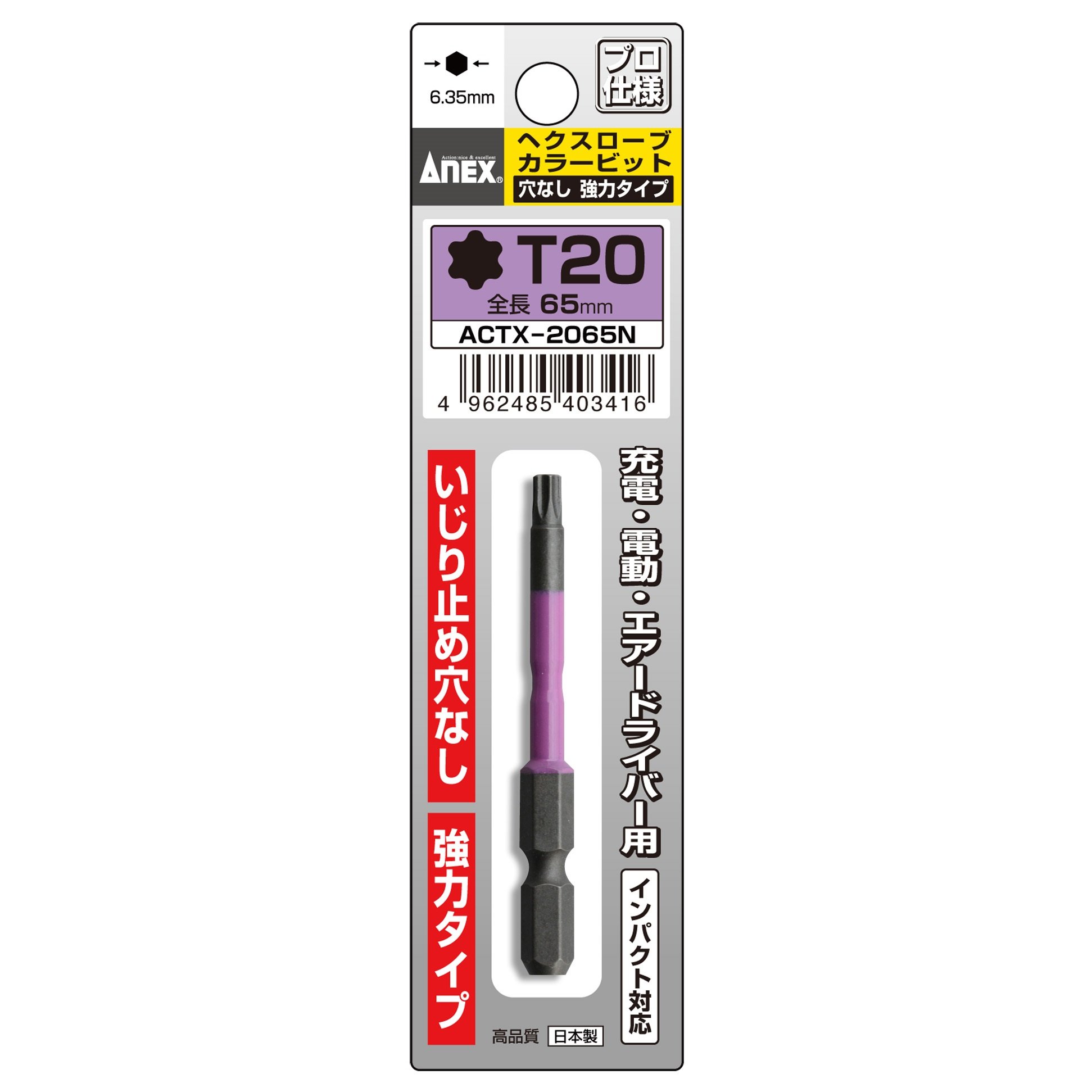 ◆商品名:アネックス(ANEX) カラービット ヘクスローブ 片頭 強力型 T20x65 穴なし ACTX-2