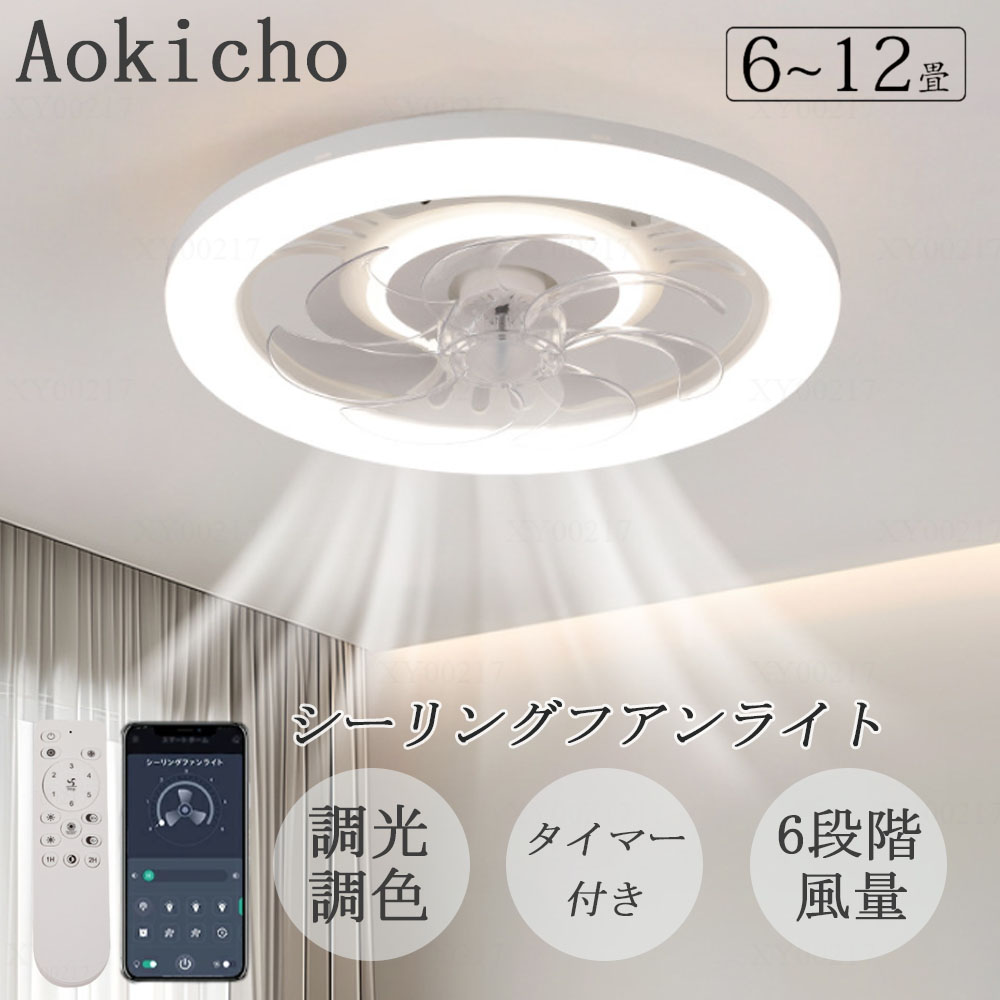 シーリングファンライト 首振り ファン付き照明 シーリングファン 天井ライト 照明器具 省エネ 調光調色 DCモーター タイマー機能 空気循環 リモコン アプリ対