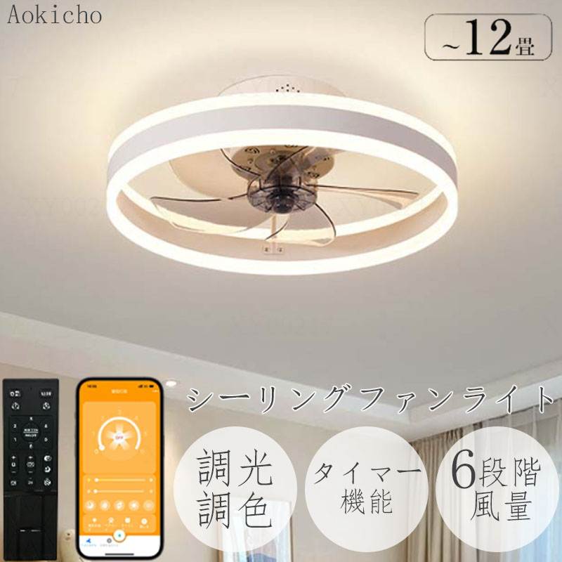 シーリングファン シーリングファンライト ファン付 LED シーリングライト 超薄型 8畳 10畳 12畳 超高輝度 天井照明 照明器具 調光 調色 常夜灯 メモリ機能