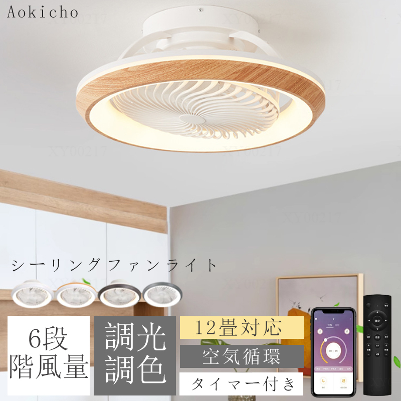 シーリングファンライト 照明 ファン付き 首振り DCモーター シーリングライト 扇風機 和室 和風 LED おしゃれ 12畳 6畳 8畳 調光調色 薄型 静か 照明器具 北欧