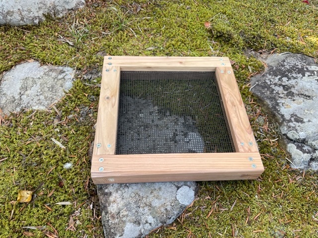 重箱式巣箱に合わせて製作した、蜂を挟むことなく上から点検ができる上網です。