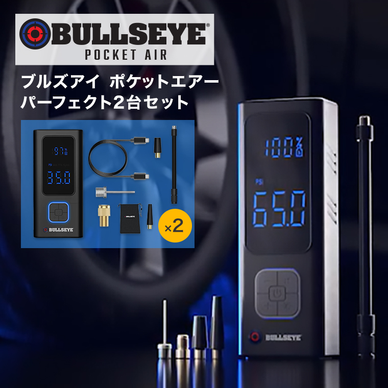 <ブルズアイ ポケットエアー 本体セット>■セット内容/本体x2、ホースx2、USB Type-C ケーブルx2、ボート用アダプターx2、取扱説明書x2