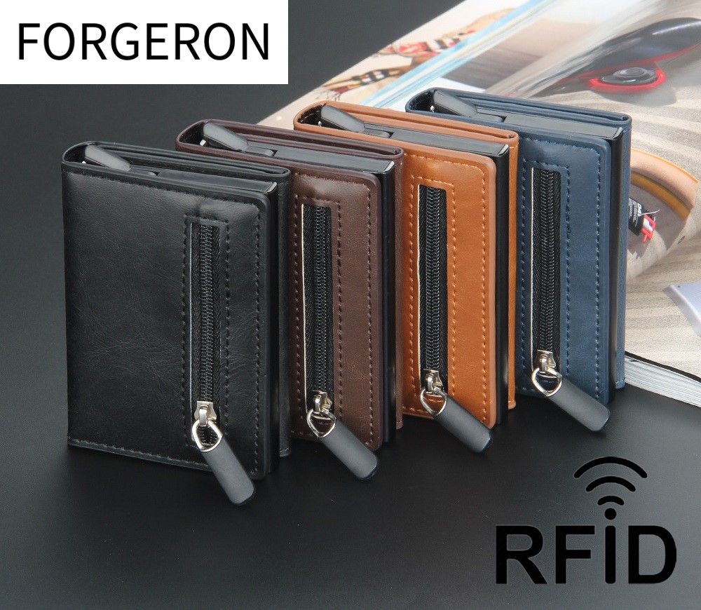 FORGERON 飛び出すPUレザーカードケース スライド式 小銭入れ付 スキミング防止 スリム RFID 薄型 ミニ財布 マネークリップ 小銭入れ カード入れ 飛び出る[671R]