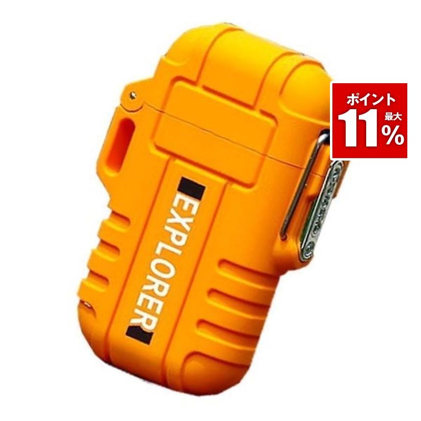 ライター オレンジ 防水 電子 USB 充電式 ガス 無炎 防風 電気 アーク プラズマ GUNLITER-OR